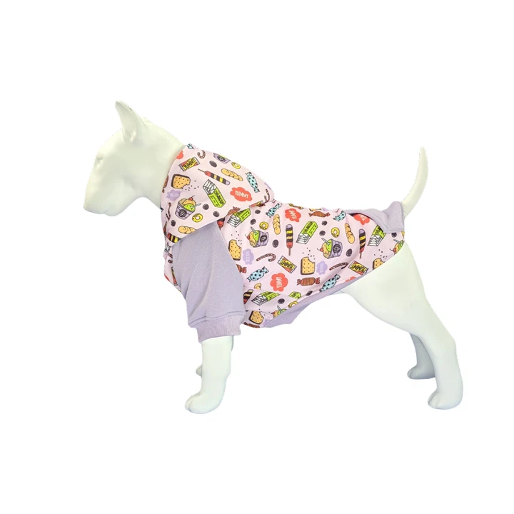 Hundesweatshirts med tryk er et af vores skræddersyede kæledyrsprodukter. Hundesweatshirten med sukker og slik ser godt ud sammen med en speciel designlomme.